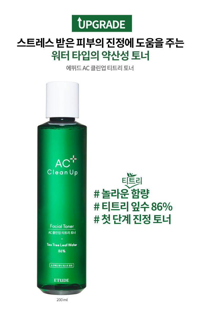 ETUDE AC Clean Up Toner ETUDE te fait redécouvrir sa gamme AC CLEAN UP. Celle-ci est spécialement conçue pour les peaux touchés par l’acné légère à modérée. Sa composition est garantie par l’application Hwahae. Ce Toner au thé vert, connu comme un allié des peaux mixtes à grasses, agira directement sur les boutons pour les réduire et préparera la peau pour les soins suivants et le maquillage. Comment l’utiliser Après le nettoyage, applique le toner sur peau sèche.
